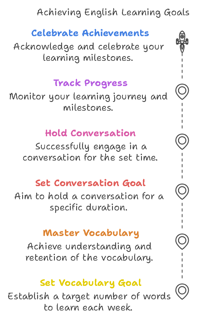 Setting achievable goals can keep you motivated and focused on your learning journey. Whether it's mastering a certain number of vocabulary words each week or being able to hold a conversation for five minutes, having clear objectives can help you track your progress and celebrate your achievements.